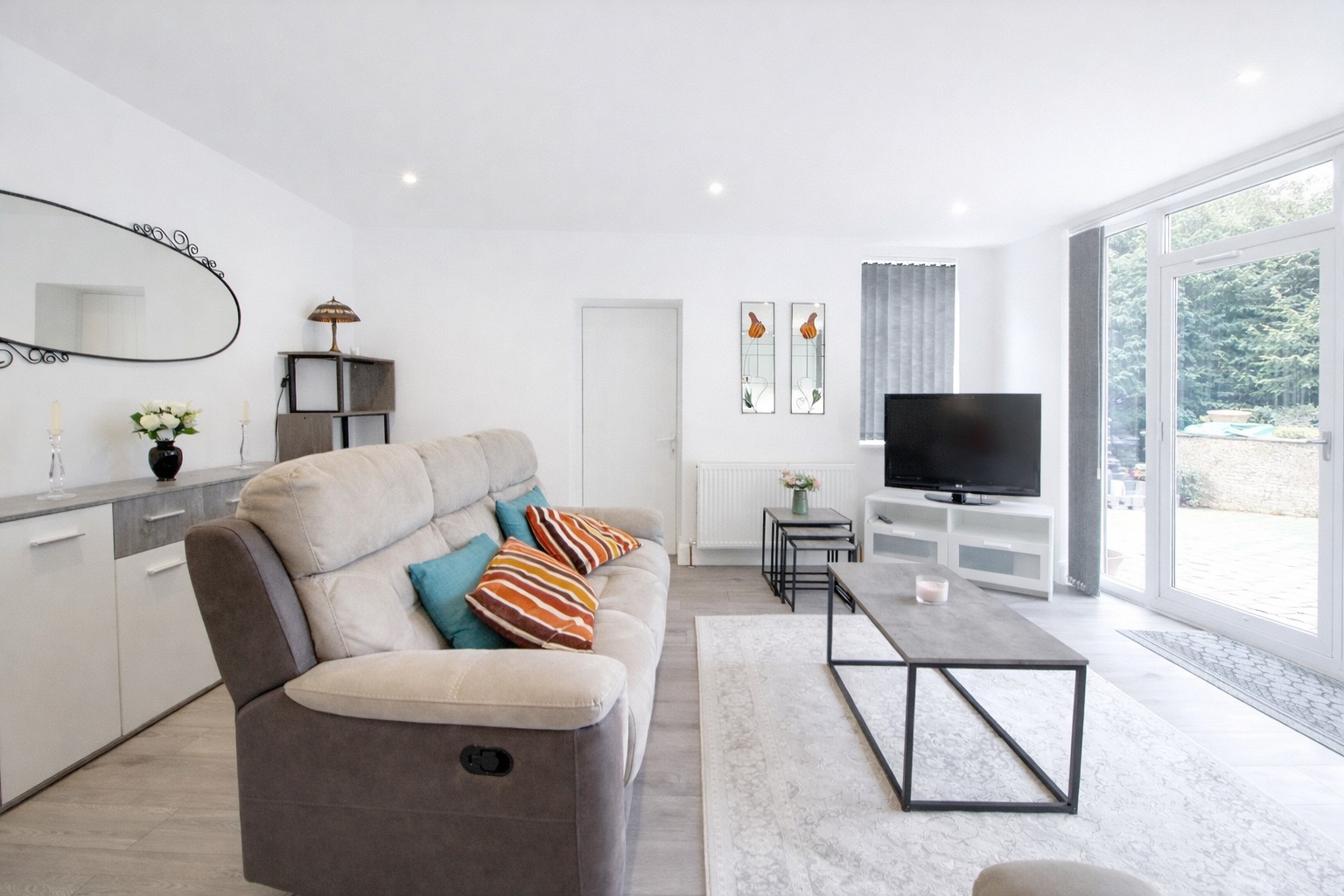 Set in a highly sought after location just a short, flat walk from Cuffley station and the village, this beautifully refurbished three bedroom detached chalet bungalow offers spacious and versatile accommodation finished to a high standard throughout. The property provides excellent potential to extend and enlarge further, subject to the usual planning consents, and is ideal for buyers seeking a home in a prime village position with generous outside space. The ground floor comprises an entrance hall, two well-proportioned bedrooms, with the master bedroom benefiting from an en-suite shower room, and a superb open plan kitchen/living/dining room creating an excellent family and entertaining space. The first floor offers a further bedroom together with a separate WC. Additional features include a garage and workshop. Externally, the property enjoys a large and mature rear garden, perfect for families and outdoor entertaining, while the front offers off street parking for several vehicles.