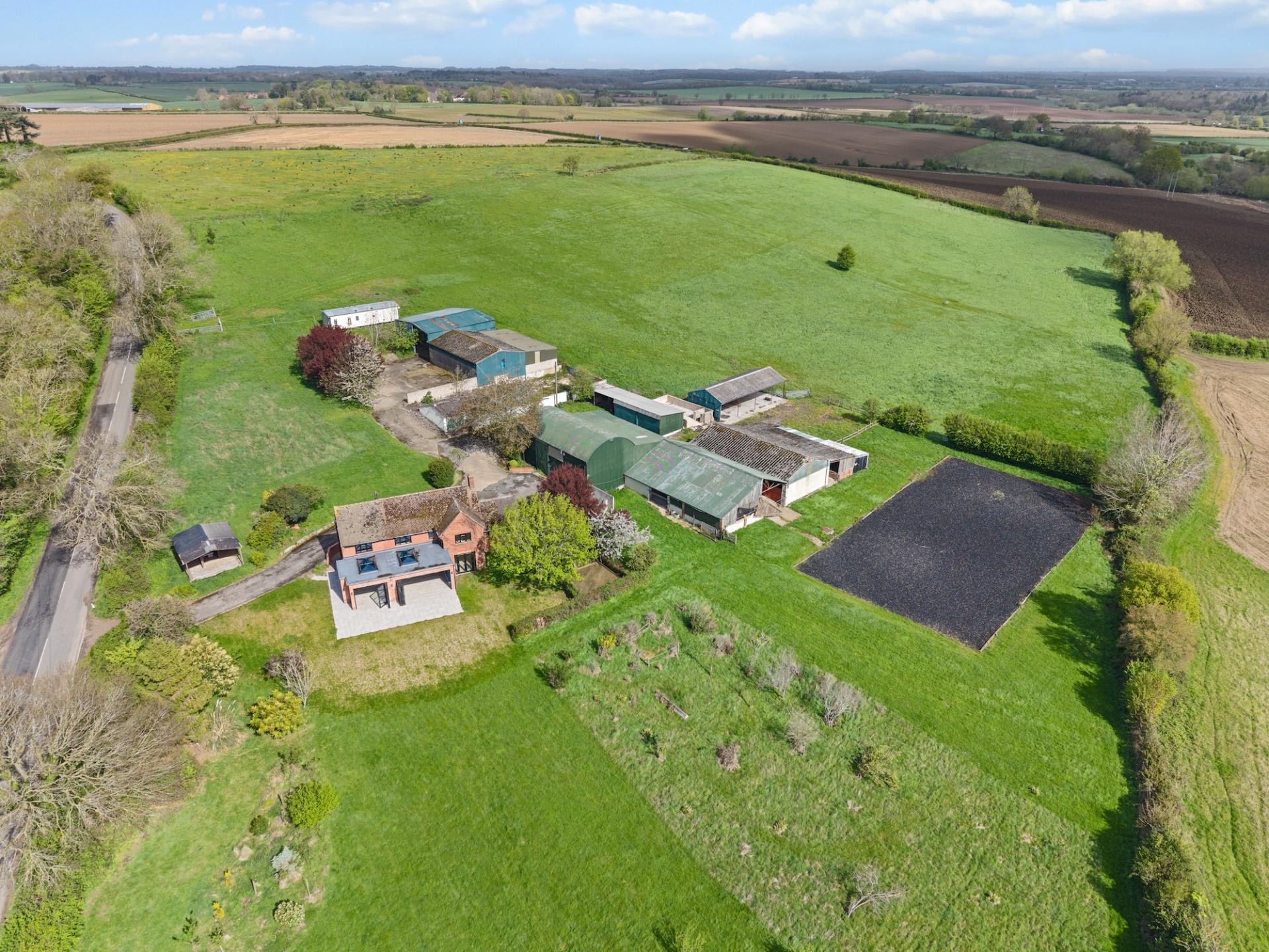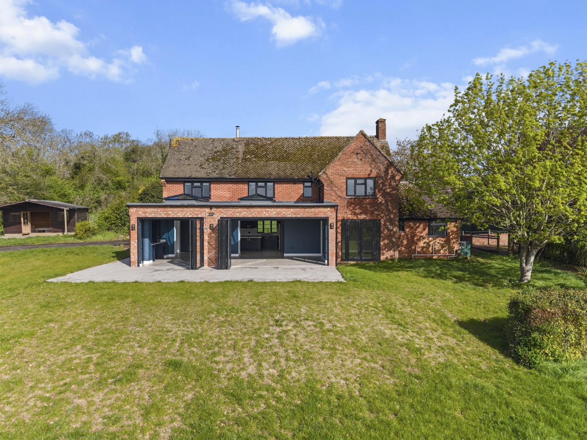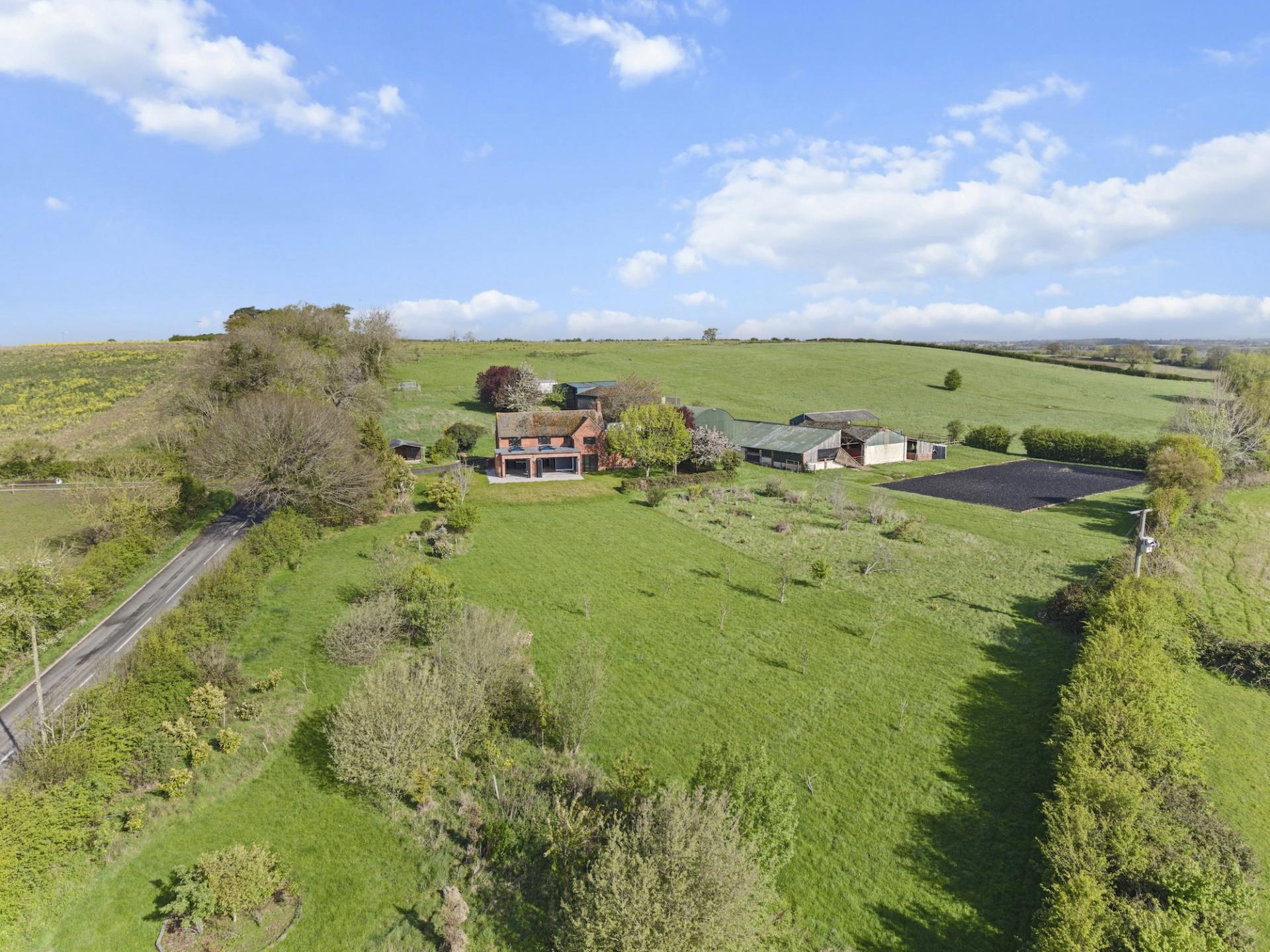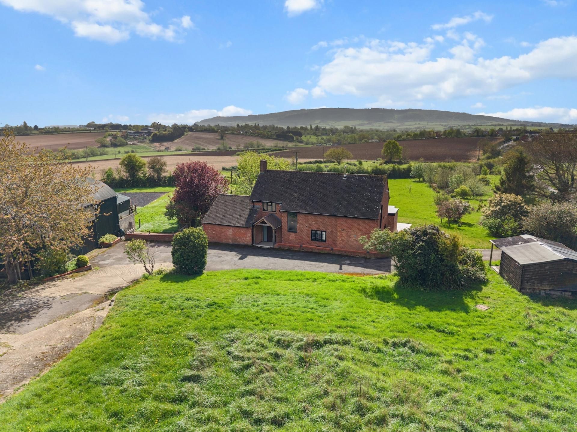 **A CONTEMPORARY DETACHED FARMHOUSE SET IN APPROX. 16 ACRES WITH STABLES, MENAGE AND SUBSTANTIAL BARNS AND OUTBUILDINGS** Extended family home with picturesque views over open countryside to Bredon Hill. The heart of this family home is the open plan kitchen/sitting/family room which is full of natural light with two sets of bi-fold door which open onto a south-easterly patio seating area to enjoy the views. The kitchen area is fitted with an extensive range of units with central island and has integrated appliances including American style fridge freezer. The property has a good sized entrance hall; utility room with w.c. and snug/office/play room. On the first floor are four double bedrooms - master with en-suite and dressing area plus a family bathroom. The lawned rear garden is enclosed by hedging with the land extending to the side of the property/garden with stables, tack room, menage and metal barn. PLANNING PERMISSION WAS GRANTED IN APRIL 2023 FOR A TWO STOREY EXTENSION - PLANNING APPLICATION W/22/02509/HP. THE TWO BARNS TO THE NORTH FURTHEST FROM THE HOUSE DID HAVE PLANNING PERMISSION FOR Q-CONVERSION TO RESIDENTIAL ALTHOUGH THIS IS NOW EXPIRED. NO ONWARD CHAIN.