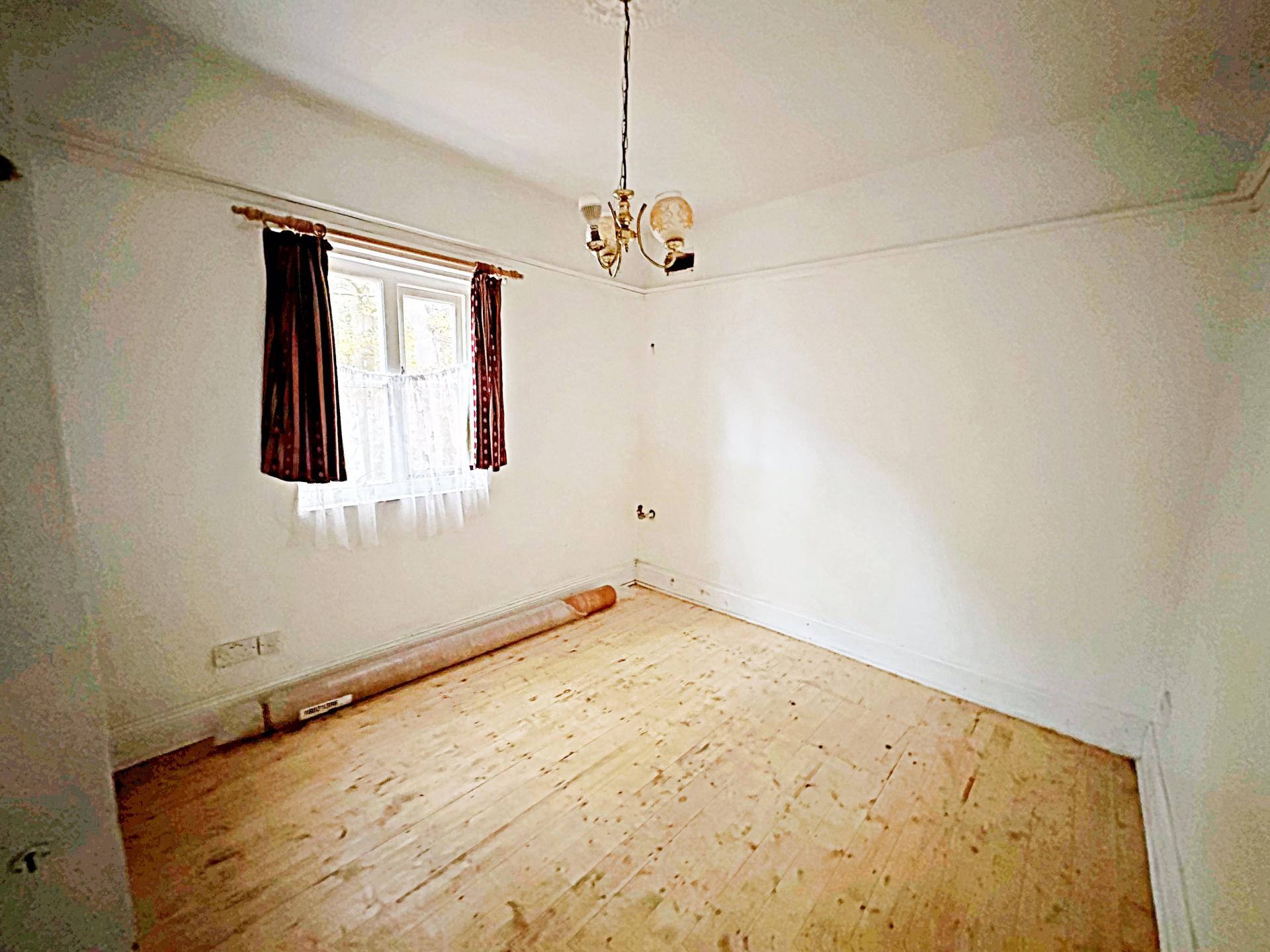 Glazed window to the front aspect. Scope for feature fireplace. Ceiling rose with pendant light fitting; wooden flooring.