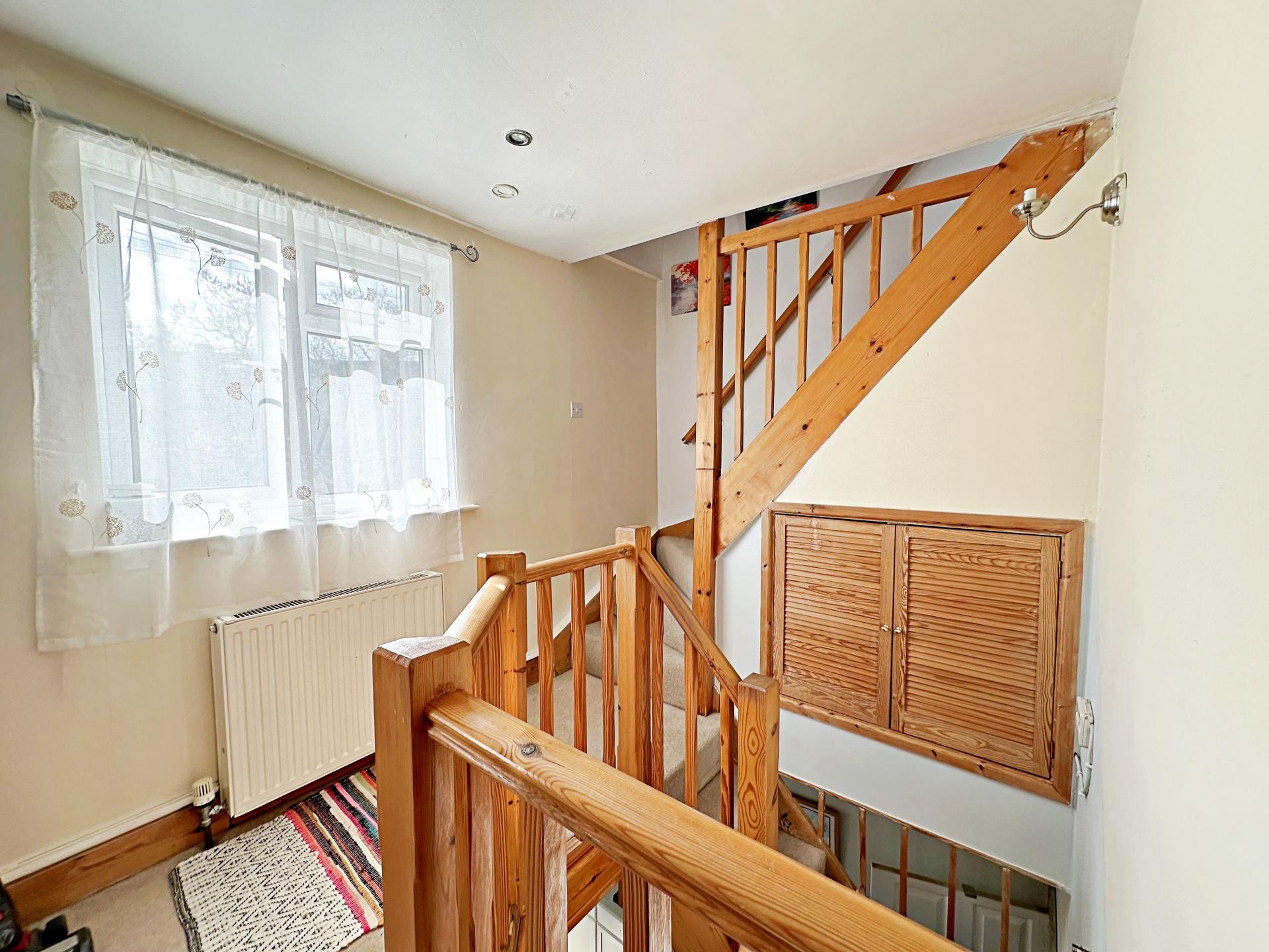 Double glazed window to the rear aspect with views to Pershore Abbey. Door to bedroom one; stairs rising to the second floor bedroom; understairs storage cupboard housing the gas-fired 'Vaillant' combi-boiler. Down lights; radiator.