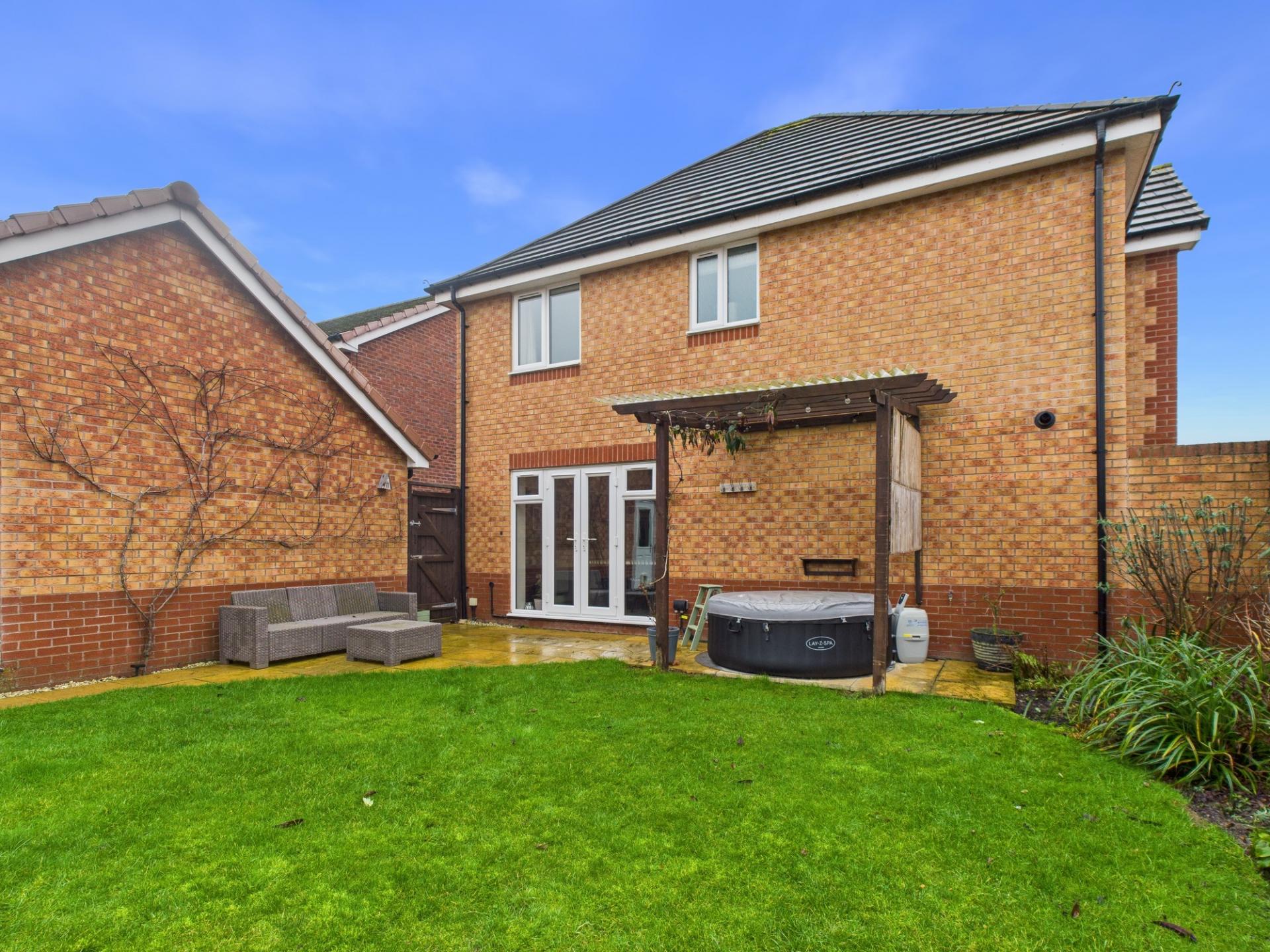 **FOUR BEDROOM DETACHED HOME IN A POPULAR RESIDENTIAL LOCATION** An immaculately presented four bedroom detached family home, superbly decorated throughout and finished to a high specification. Entrance hall; kitchen/dining room with French doors to the garden; lounge; snug; cloakroom. On the first floor there are four bedrooms, main bedroom with en-suite and a family bathroom. The rear garden is landscaped with a patio seating area and timber pergola, planted borders and an impressive grape vine. Detached garage with light and power along with tandem parking for two vehicles. Approximately 2 years remaining on the NHBC. Pershore town centre with amenities to include the beautiful Abbey and park, pubs, restaurants, supermarkets, independent shops, a theatre and schools. Easy access to motorway links and public transport with the Pershore train station and the Worcestershire Parkway train station.