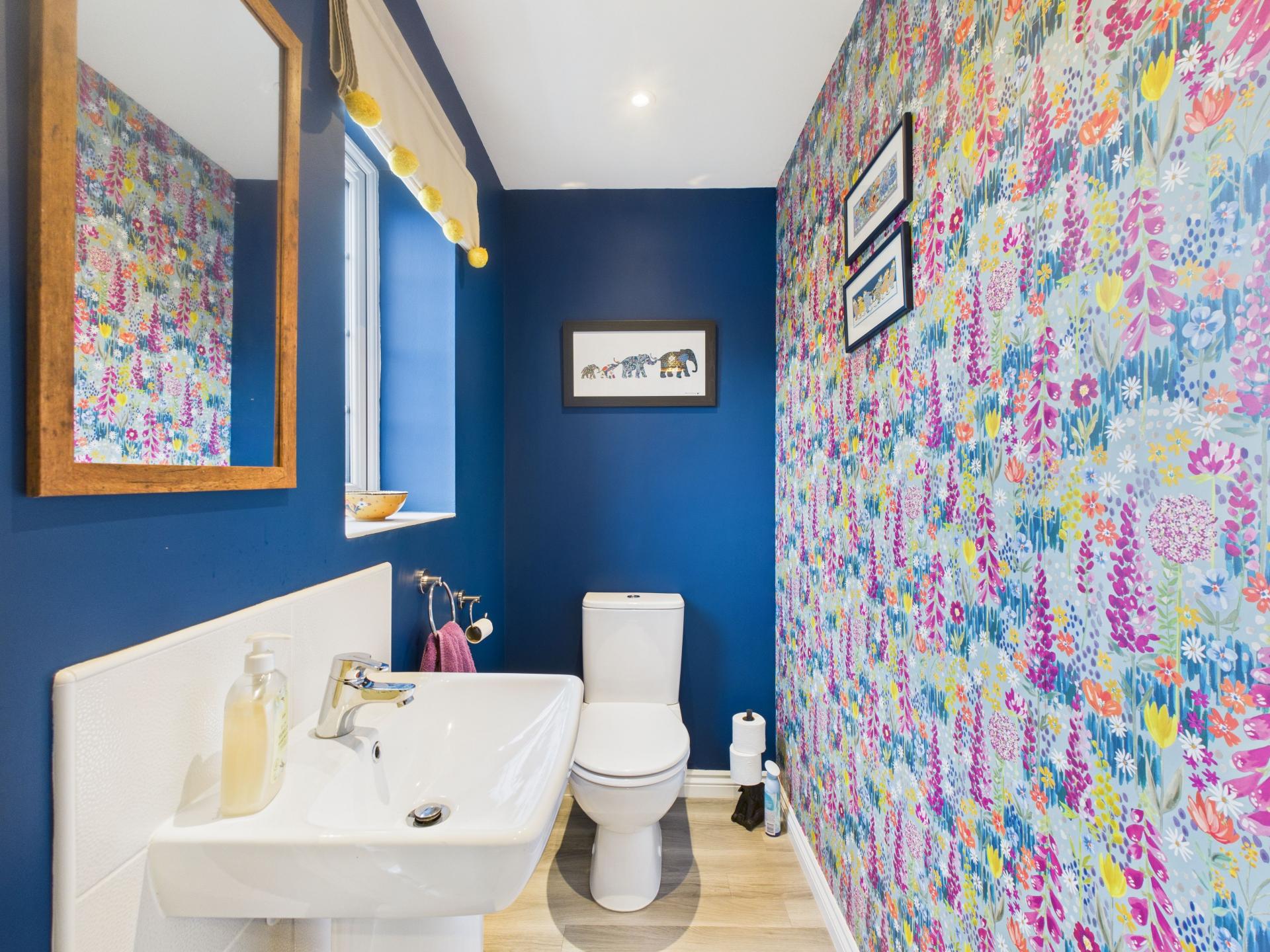 Obscure double glazed window to the front aspect. Pedestal hand wash basin with mixer tap. Low level w.c. Down lights; extractor fan; radiator; wood effect flooring.