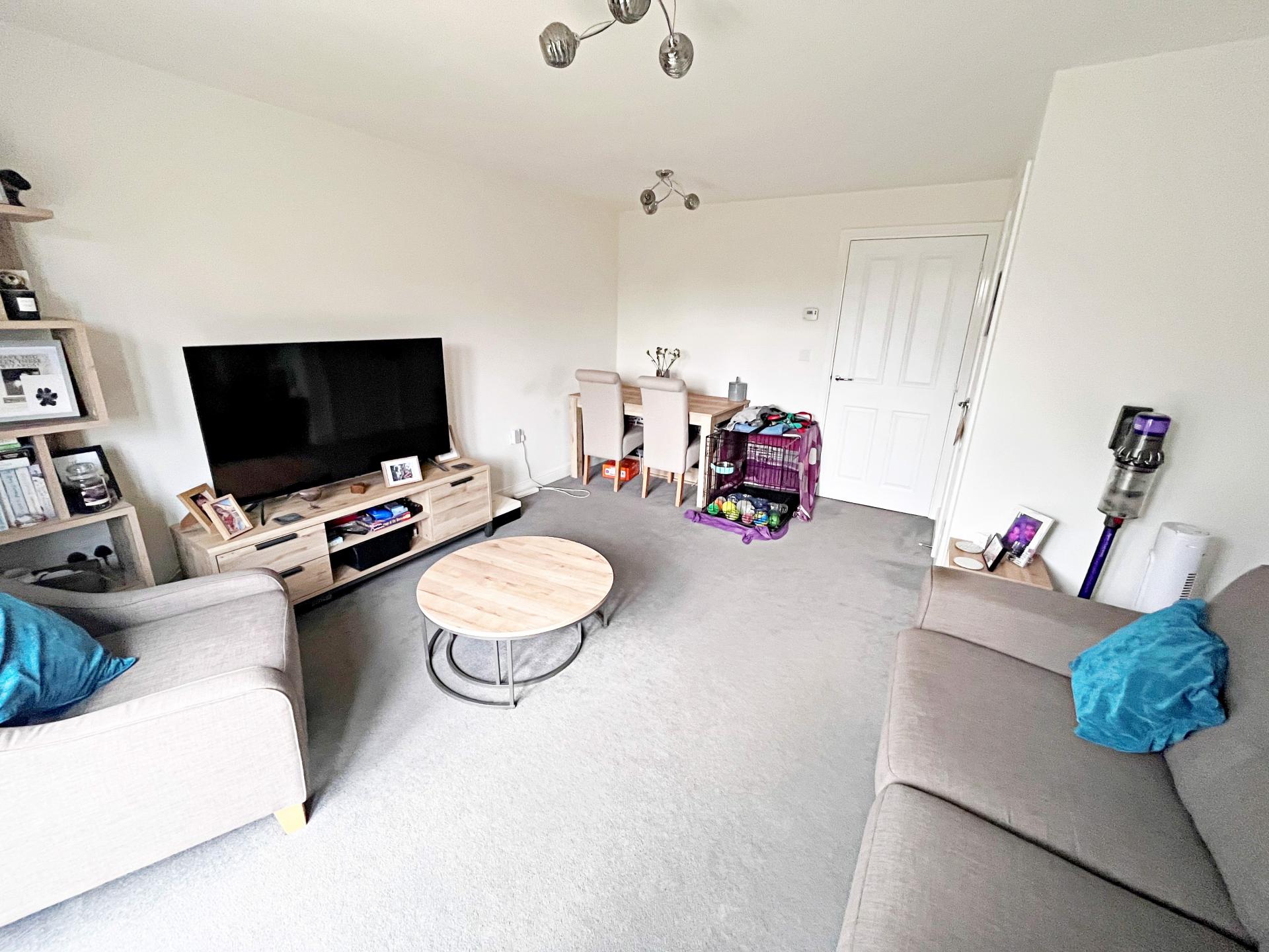 Door to the front; doors to the cloakroom and living/dining room. Open plan to the kitchen. Stairs rising to the first floor. Down lights. Radiator and wood effect flooring.