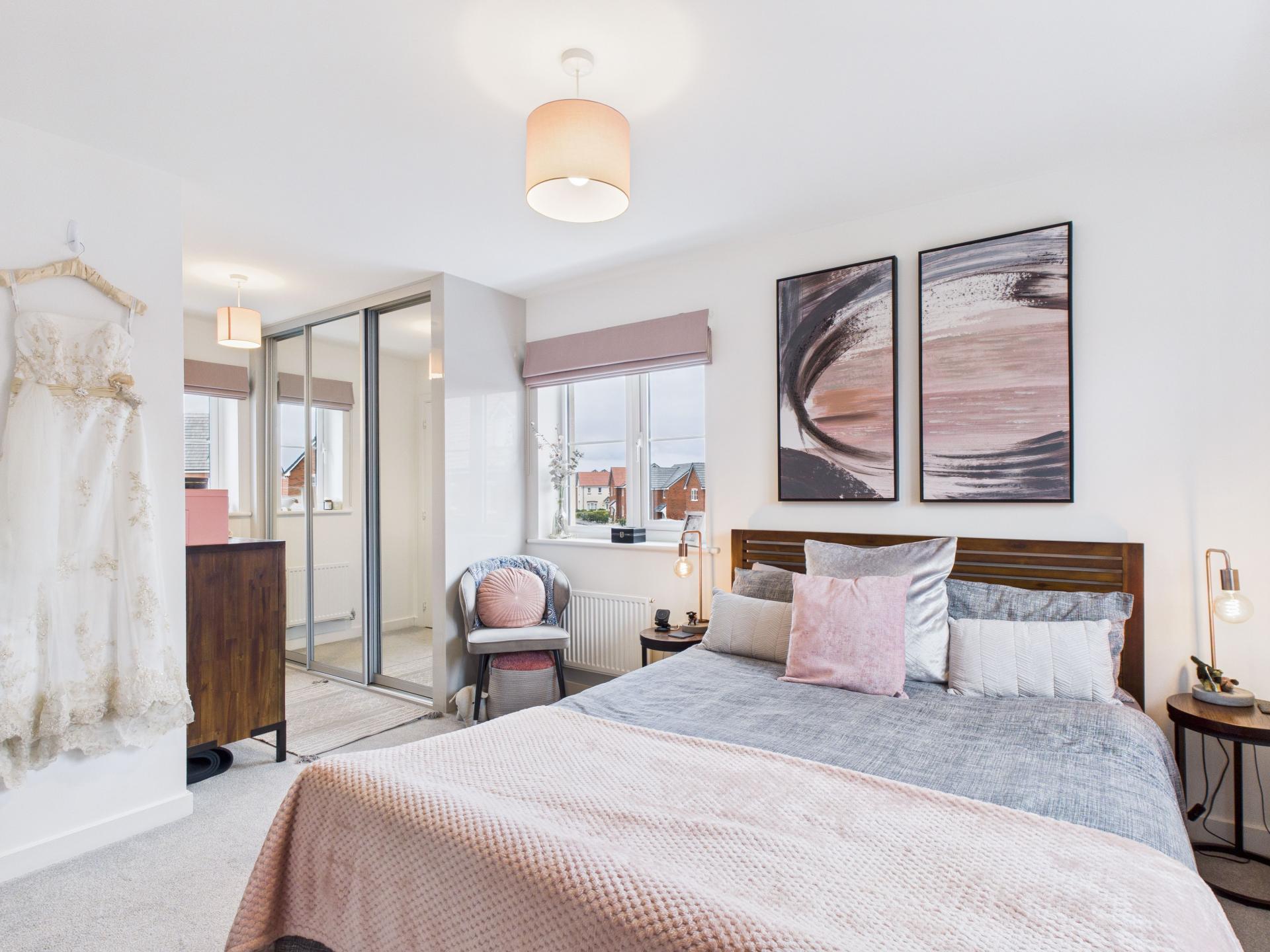 Double glazed windows to the front, side and rear aspects with internal blinds. Built in wardrobes with mirrored sliding doors. Pendant light fitting. Radiator. Door into the en-suite.