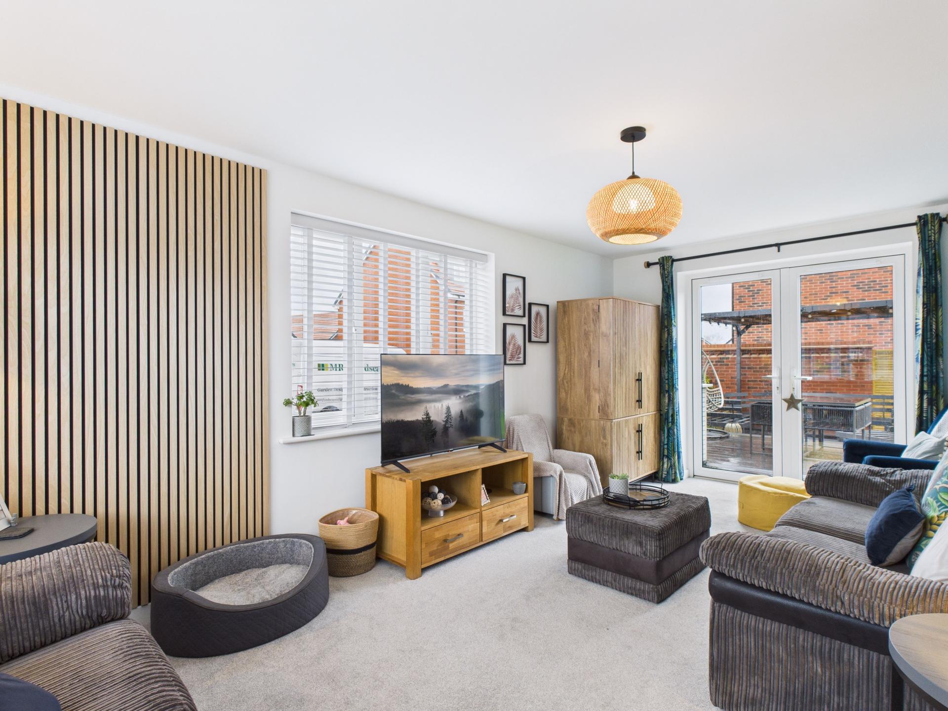 Double glazed windows with internal blinds to the front and side aspects. Double glazed French doors into the rear garden. Pendant light fitting. Radiator.