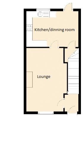 Obscure wooden entrance door. Stairs rising to the first floor. Laminate wood flooring. Radiator. Door into lounge.