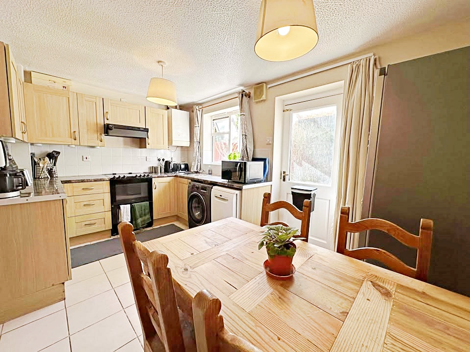 Double glazed window and door to the rear aspect. Range of wall and base units surmounted by work surface. Space for cooker with extractor over. Space for washing machine, dishwasher and fridge freezer. Wall mounted gas-fired boiler. Radiator. Door to the under stairs cupboard with light.