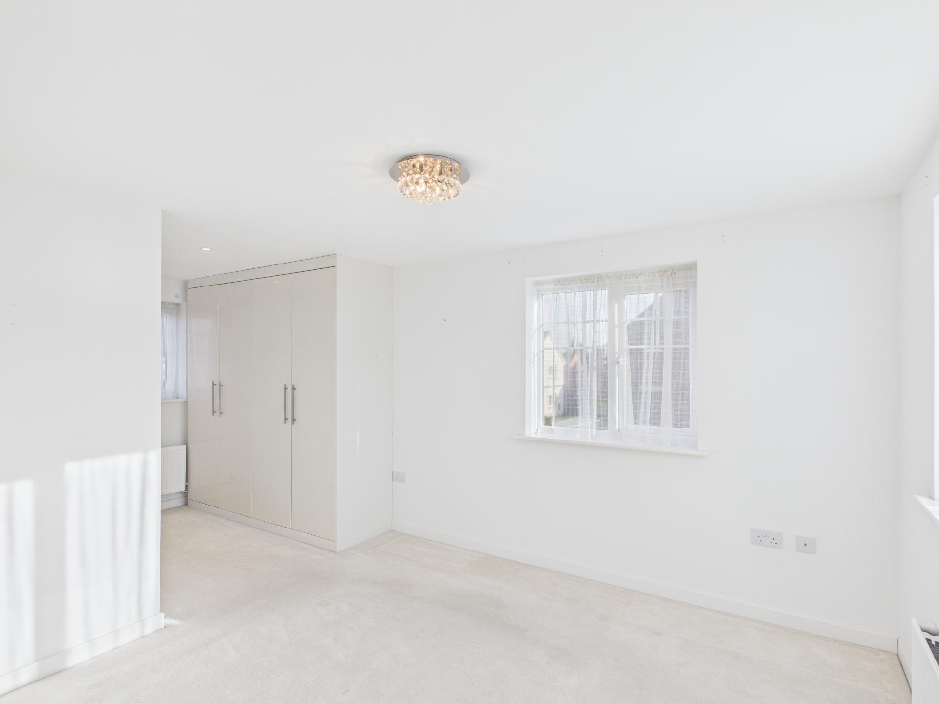 Triple aspect double glazed windows. Fitted wardrobes. Door to the en-suite. Radiator.