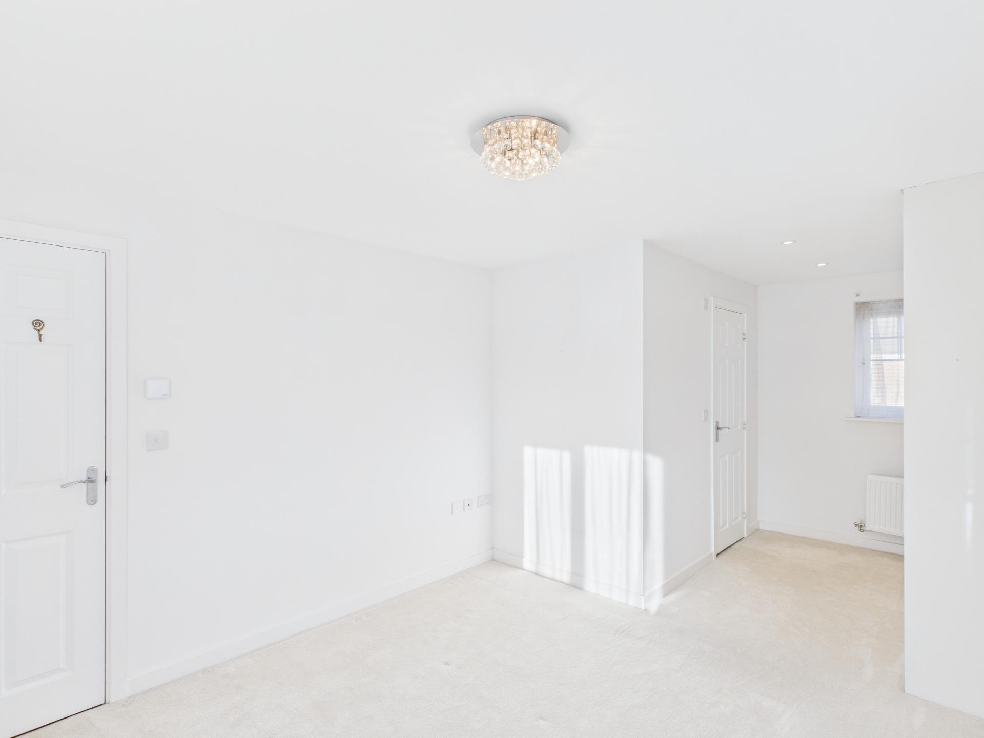 Double glazed window to the front and rear aspects. Wall and base units surmounted by worksurface. Stainless steel one and a half sink with mixer tap. Integrated induction hob with extractor fan over, eyelevel oven, fridge freezer and dishwasher. Space for a dining table. doors to the utility room and under stairs storage cupboard. Luxury vinyl flooring. Radiator.