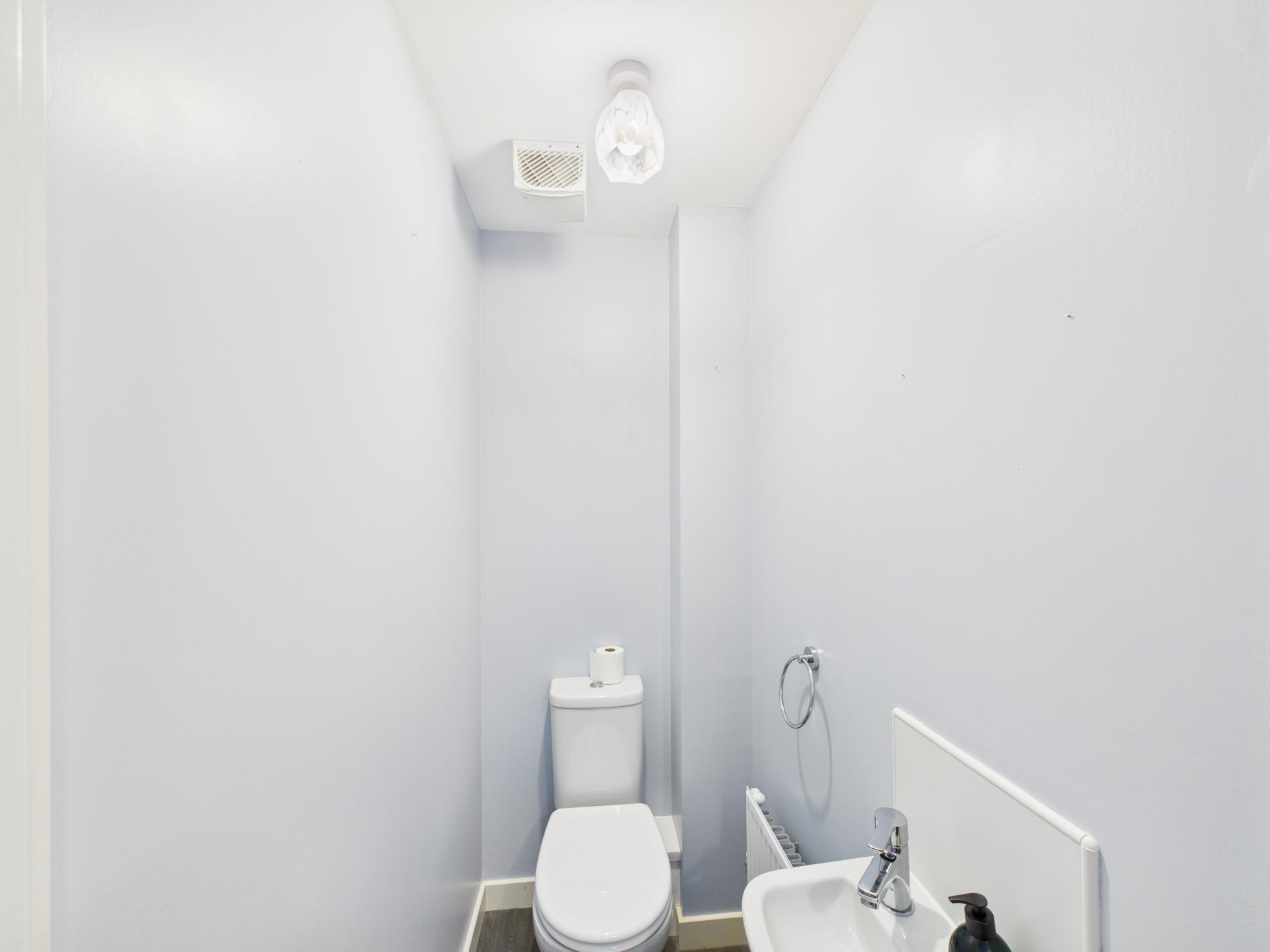 Wash hand basin and low flush w.c. Luxury vinyl flooring.