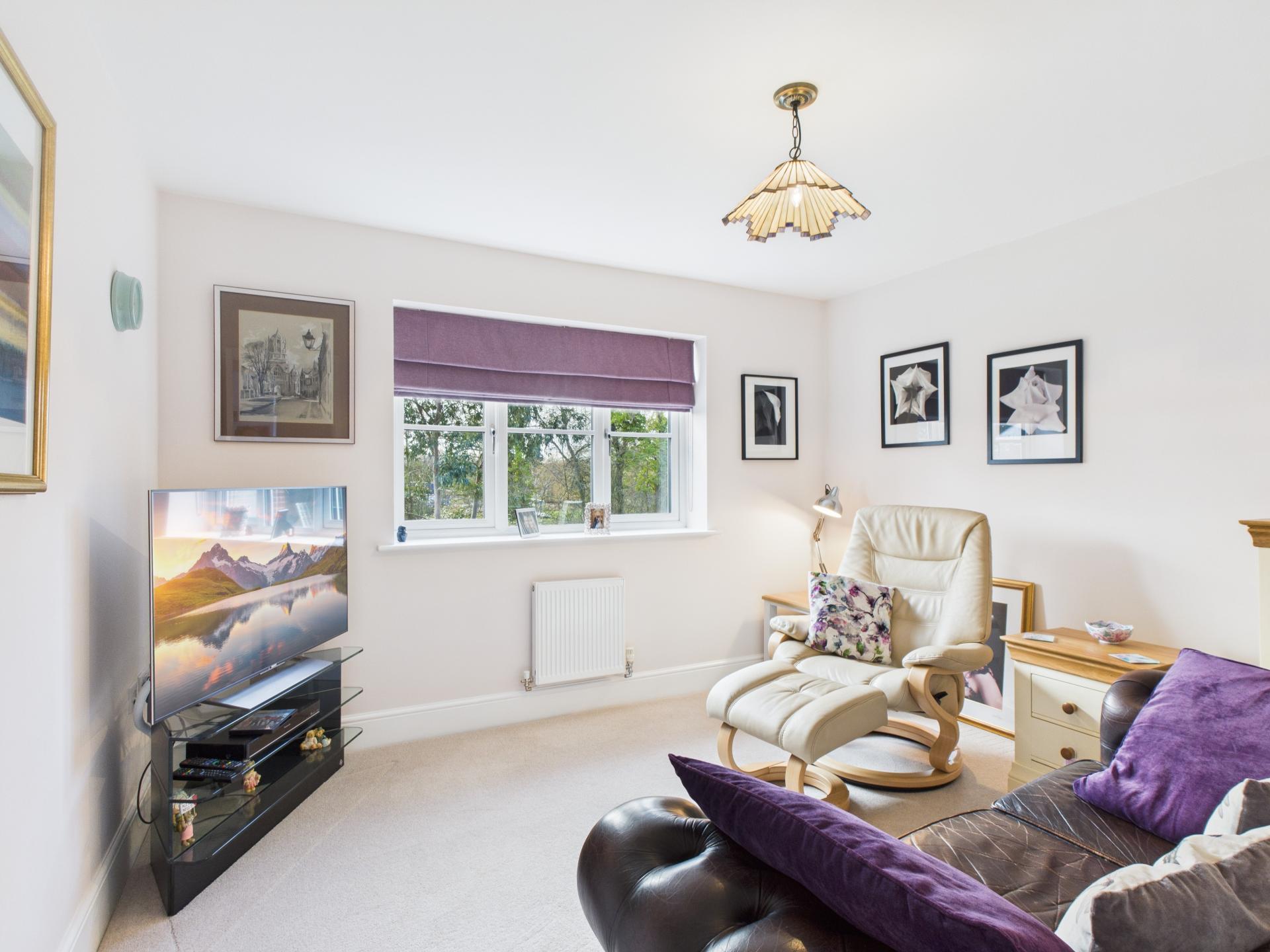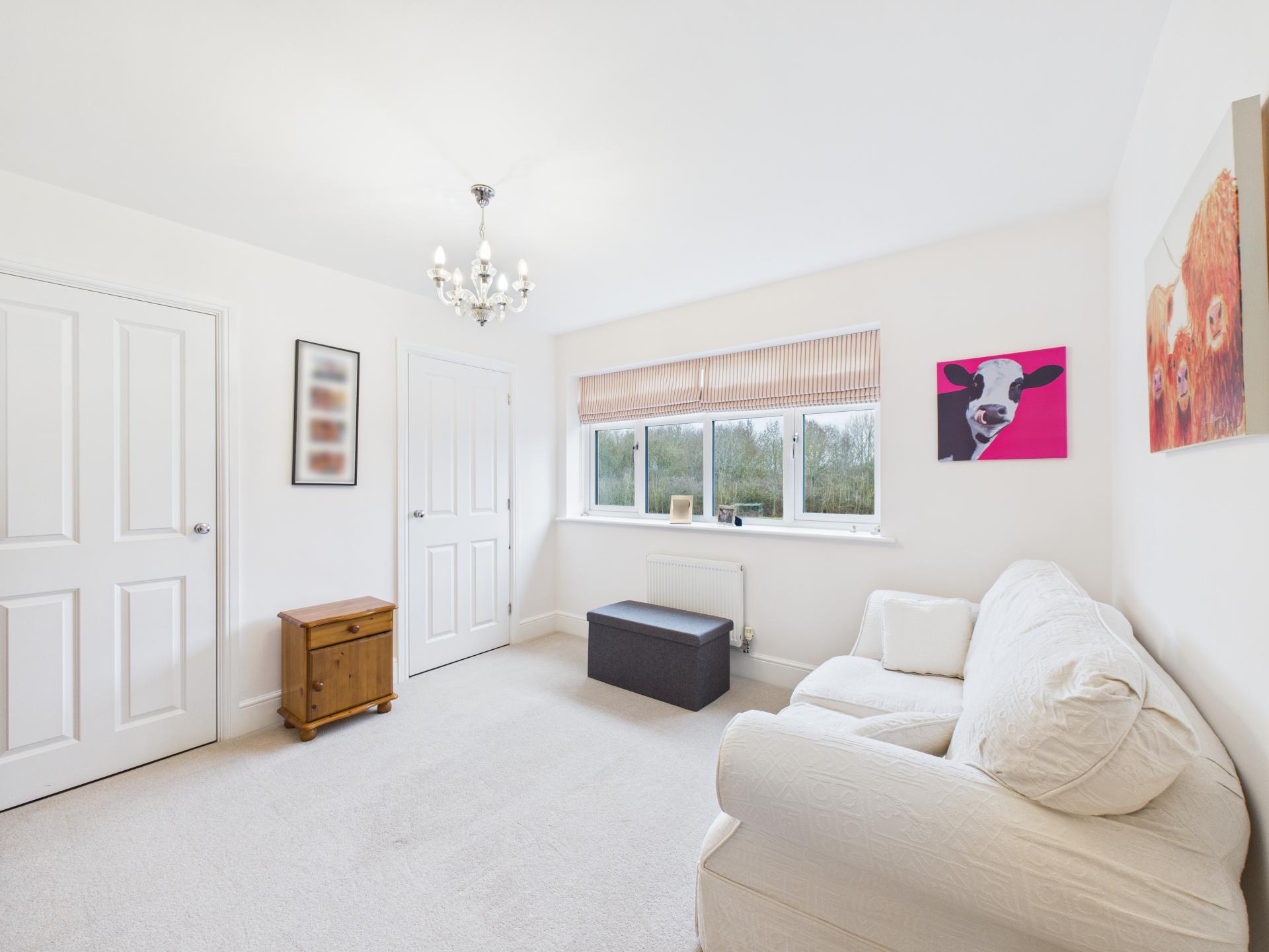 Triple glazed bay window to the front aspect, triple glazed window to the side aspect. Down lights; radiator. Currently being used as the study.