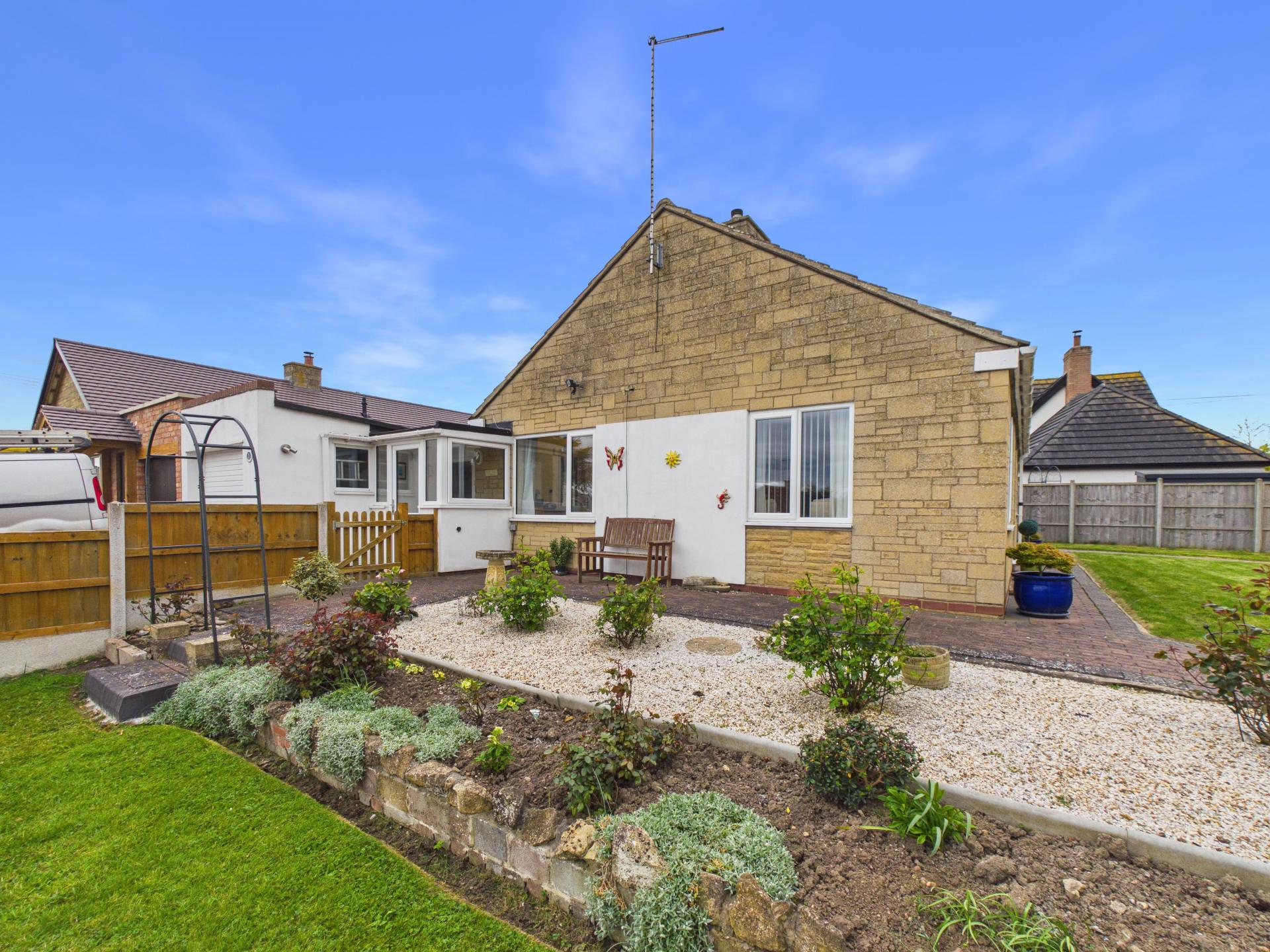 **A WELL-APPOINTED LINK-DETACHED BUNGALOW OCCUPYING A SIZEABLE CORNER PLOT WITH GARAGE AND DRIVEWAY** Entrance porch; kitchen/breakfast room enjoying windows outlooking both the front and rear gardens, creating a pleasant and airy space for cooking and dining; inviting sitting room centred around an attractive feature fireplace with electric flame-effect fire, providing a warm and relaxing living area. The property includes two spacious double bedrooms, each with fitted storage, together with a smartly presented walk-in shower room finished in neutral tones. Outside, the property benefits from a substantial corner plot with a lawned frontage and a private rear patio garden, ideal for outdoor seating and low-maintenance enjoyment. Additional features include a garage with useful utility space and a driveway offering parking for multiple vehicles. Positioned within the well-regarded village of Pinvin, close to nearby Pershore, local facilities and surrounding countryside, the bungalow offers a lovely combination of village setting and everyday accessibility. This property is offered for sale with no onward chain.
