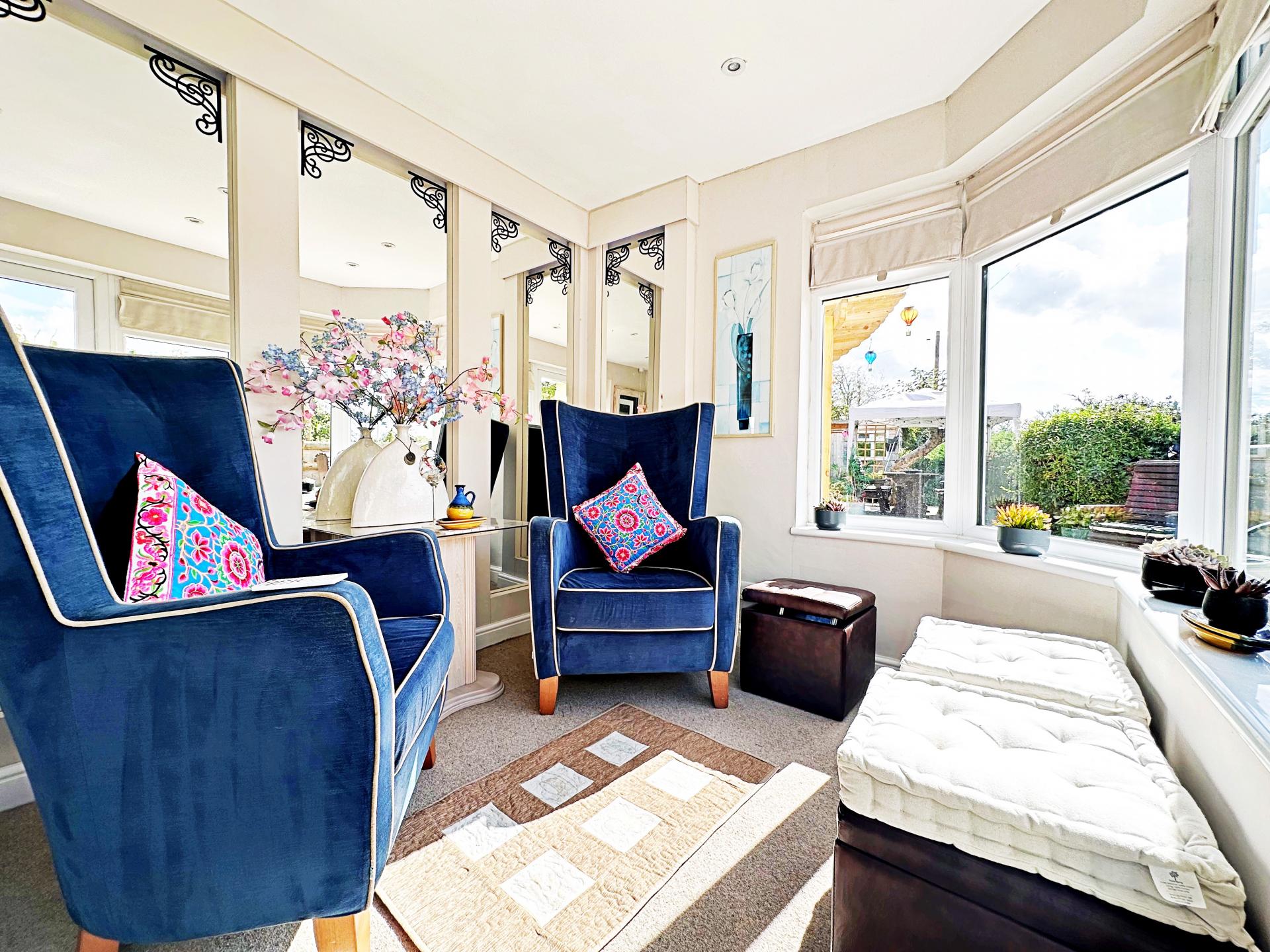 Double glazed sliding door to the front aspect. Double glazed window to the side aspect. Log burner with hearth and oak mantle. Under stairs cupboard with light and power. Electric heaters. Pendant light fitting. Door into the kitchen.