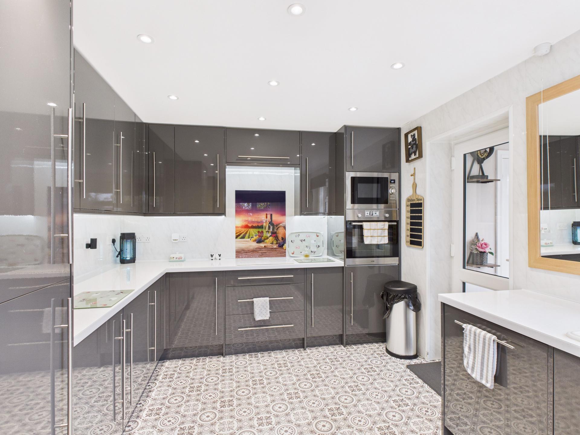 Double glazed door to the side aspect; double glazed windows to the side and rear aspect. Ceiling down lights. Door into the cloakroom.