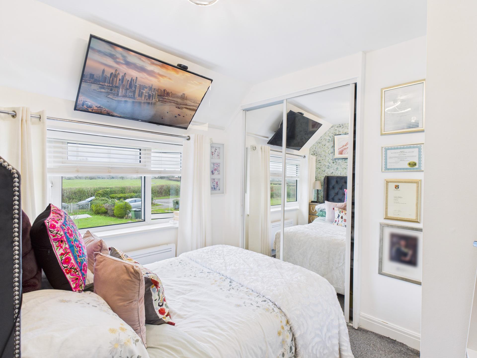 Double glazed window to the rear aspect, with views to the open countryside and Malvern Hills. Two built in wardrobes with mirrored sliding door. Pendant light fitting. Electric radiator.