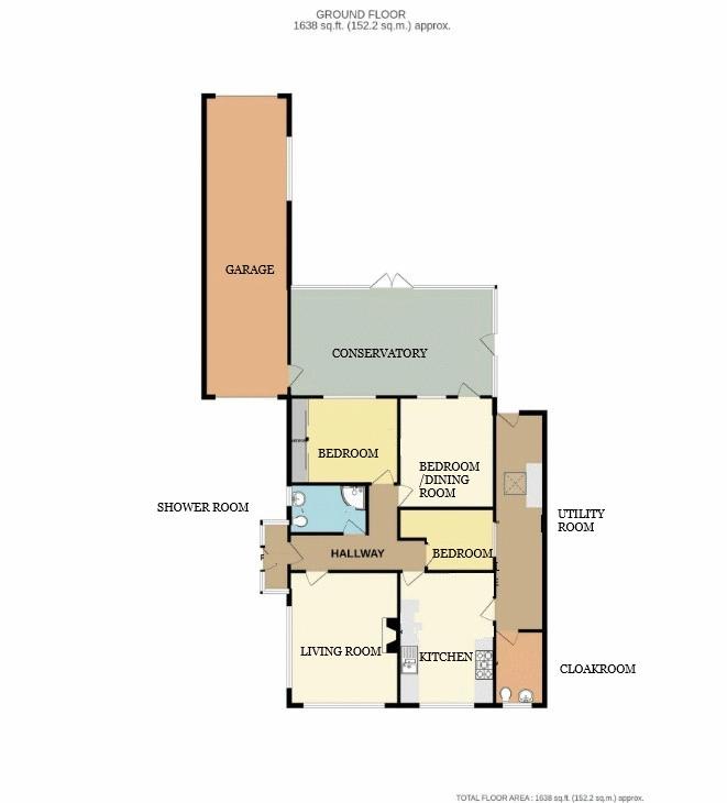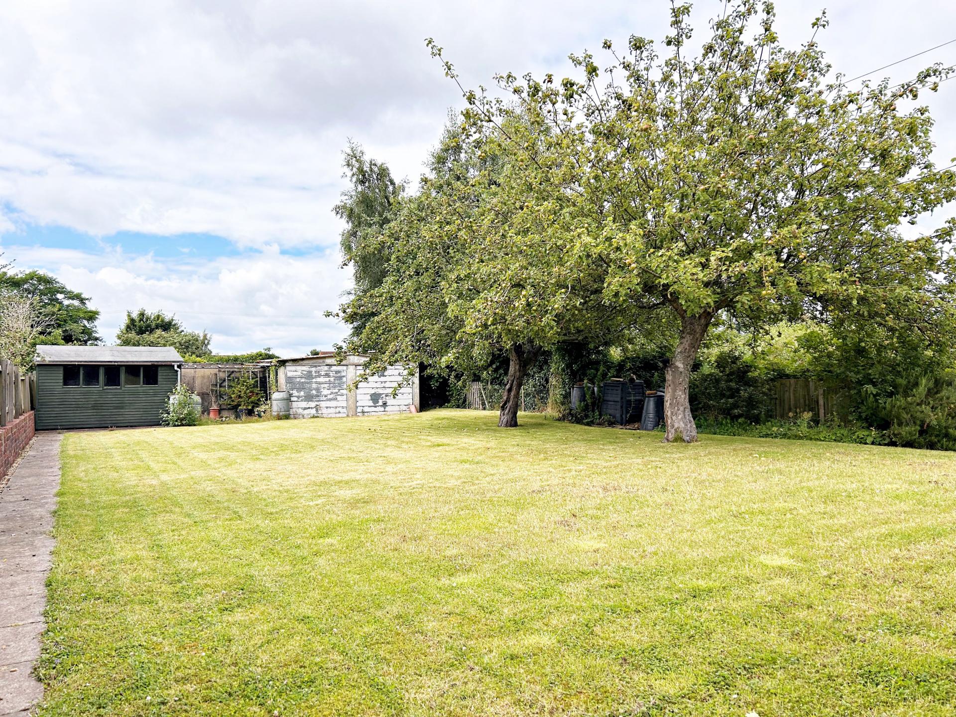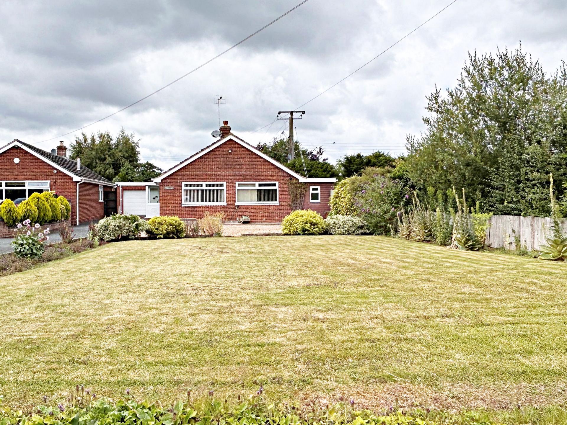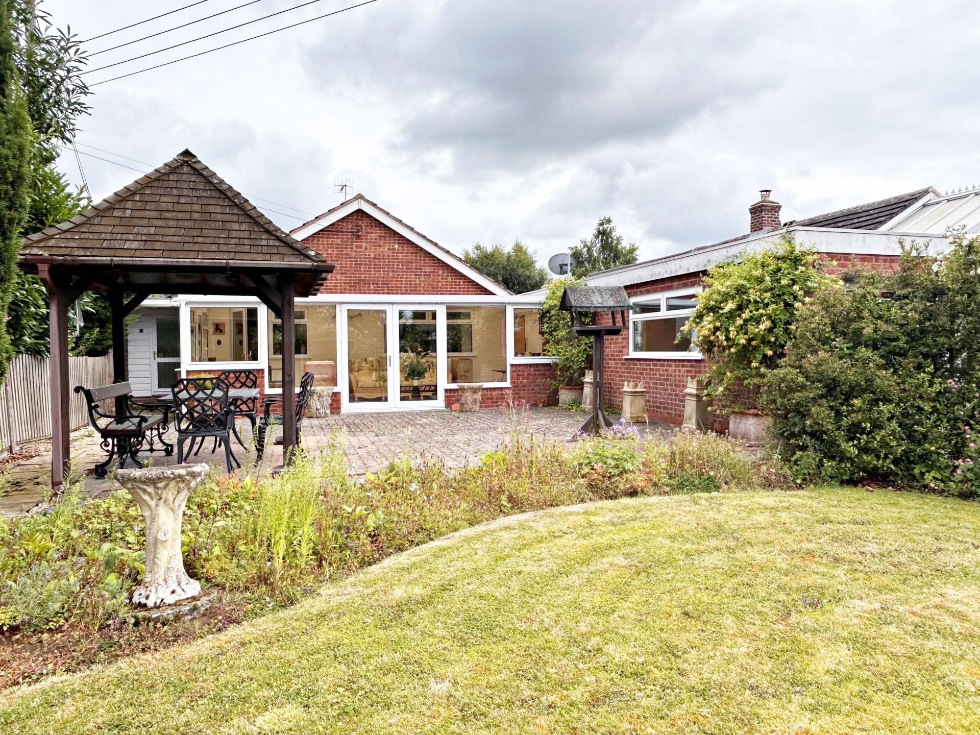 **THREE BEDROOM DETACHED BUNGALOW** Entrance hall; dual aspect living room; breakfast kitchen with a separate utility room and cloakroom; three bedrooms and a shower room. Bedroom one/dining room has access to the conservatory with French doors to the garden. The superb rear garden is laid to lawn with mature trees, shrubs and planting. Patio seating area with a covered pergola. An ideal growing area. Greenhouse and garden shed. Double tandem garage and parking for several