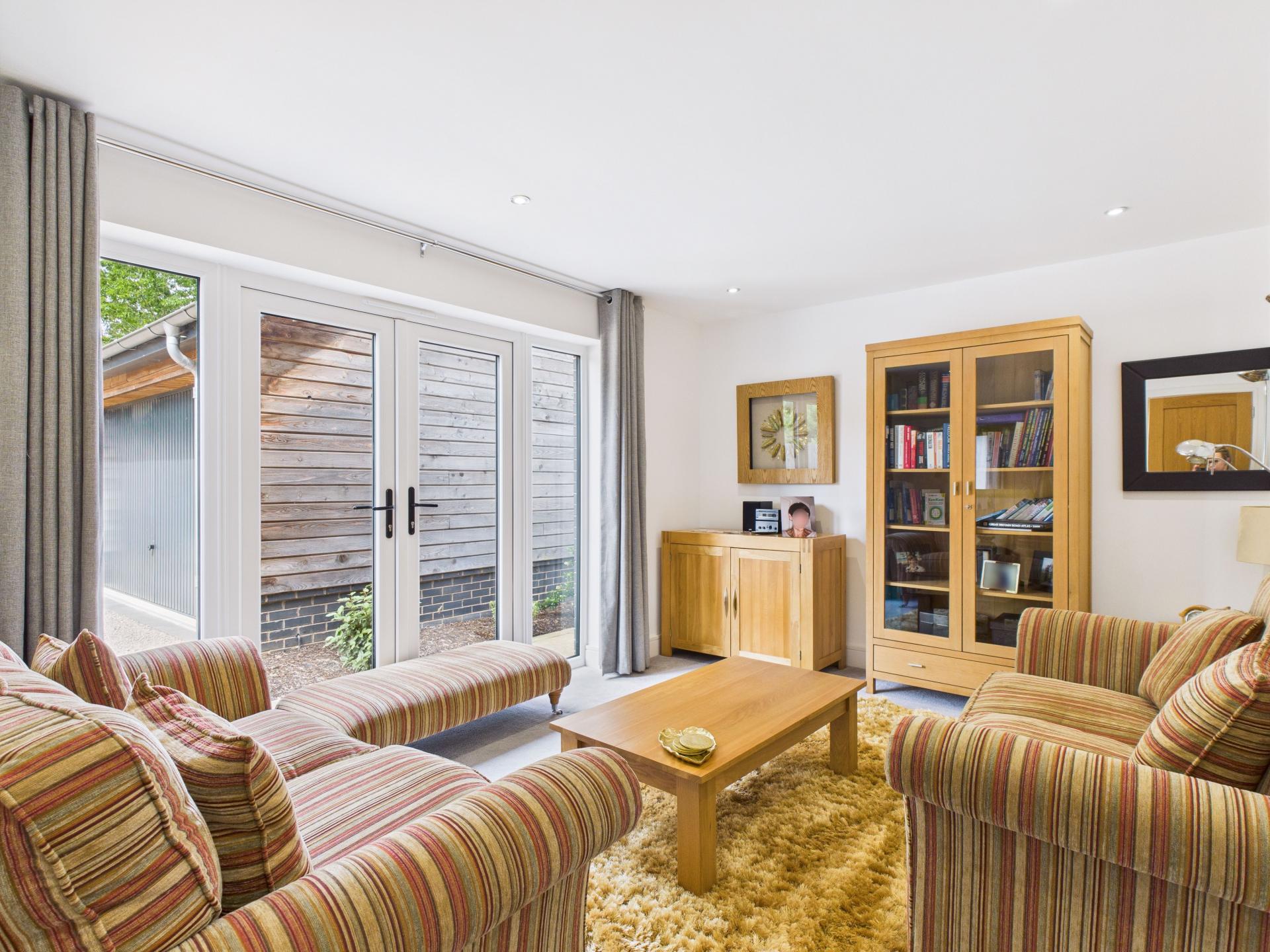 Double glazed triple aspect awning windows to the front, side and rear. Three sets of French doors into the garden. Kitchen area fitted with a range of wall and base units surmounted by marble worktop and upstands. Central island with 'Neff' induction hob with extractor hood above. Integrated 'Neff' oven/microwave/ warming draw; 'Neff' dishwasher, wine fridge and built in fridge/ freezer. Dining/ family area with wood burner. Television point. Luxury vinyl tiled flooring. Ceiling down lights.