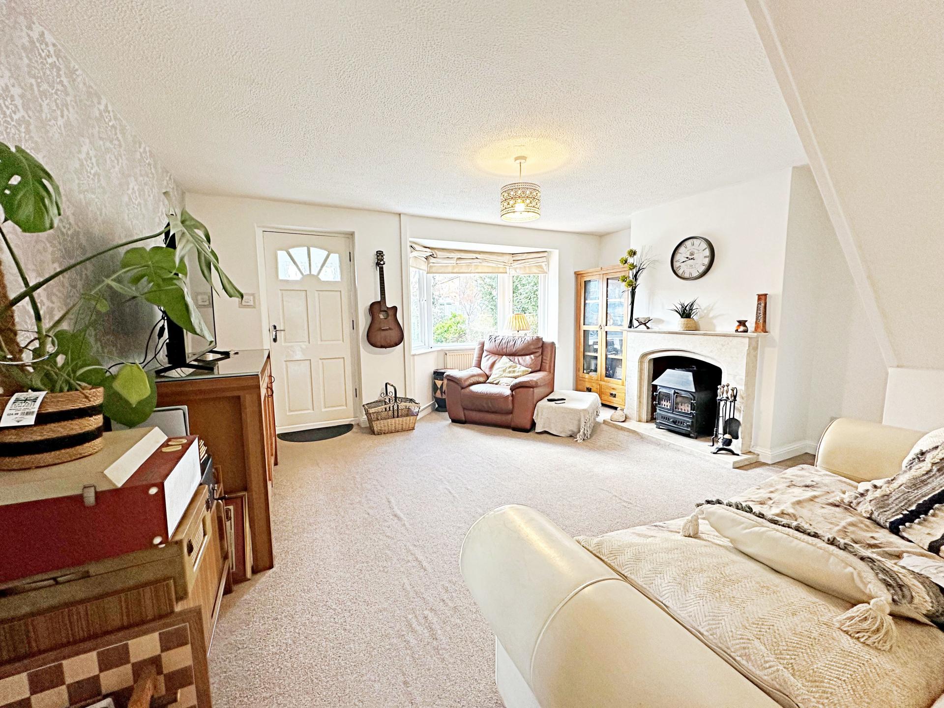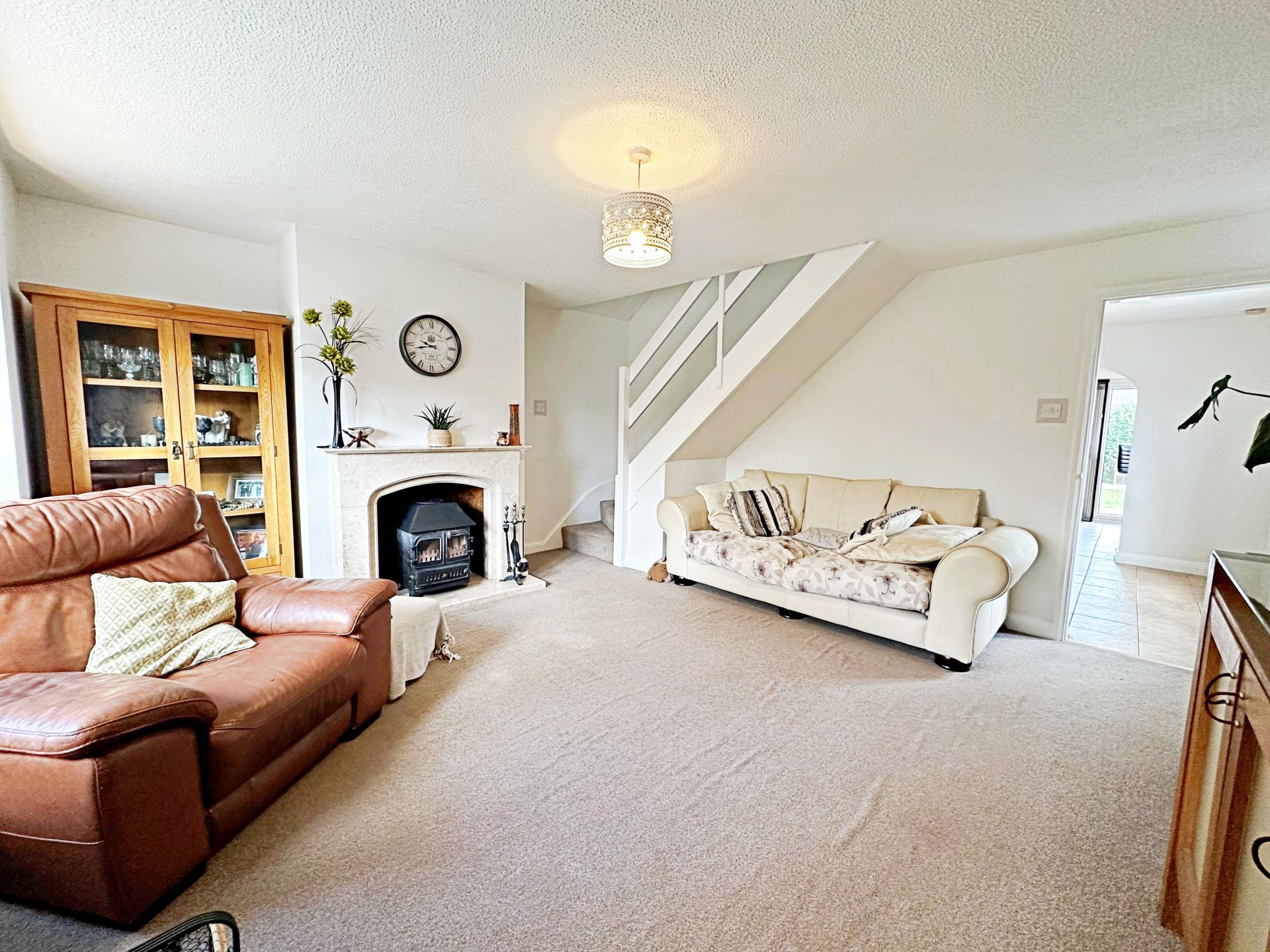 Double glazed bay window to the front aspect and double glazed window to the side aspect. Feature fireplace with marble surround and hearth housing a log burner. Stairs rising to the first floor; pendant light fitting; radiator; door to the dining room.