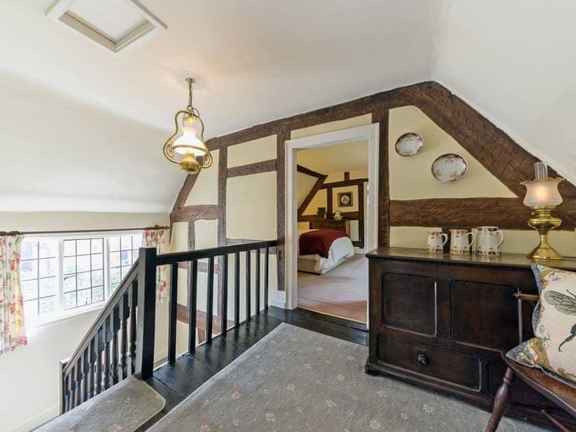 Dual aspect single glazed windows to the front aspect and bay window to the side aspect with a window seat. Exposed brick wall and inglenook with an open fire. Two radiators.