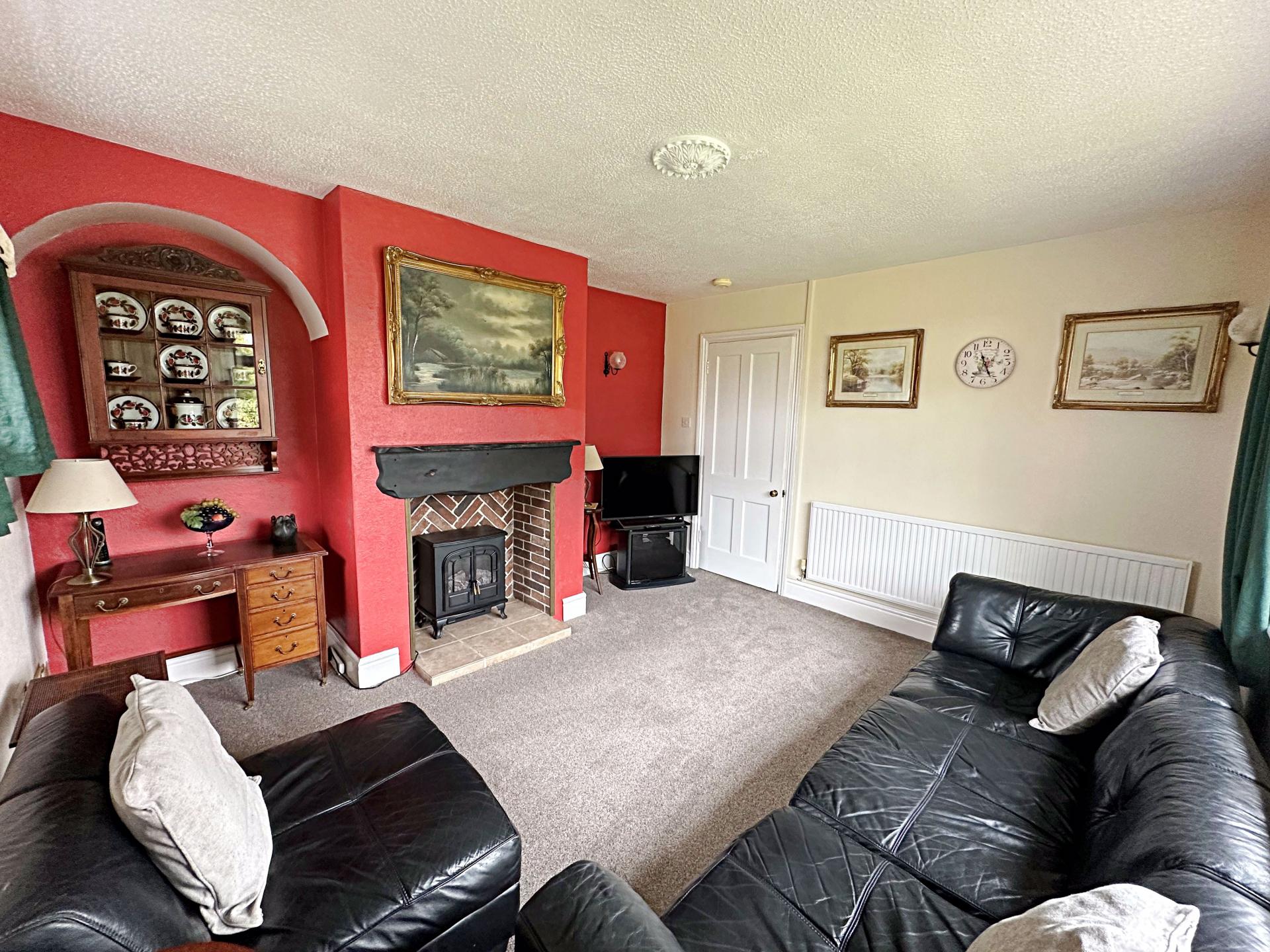 Double glazed window to the front aspect and feature arch shaped window to the side with far reaching views. Chimney breast with space for electric or wood burner stove and wooden mantle/shelf above. Television aerial point. Wall lights. Radiator.