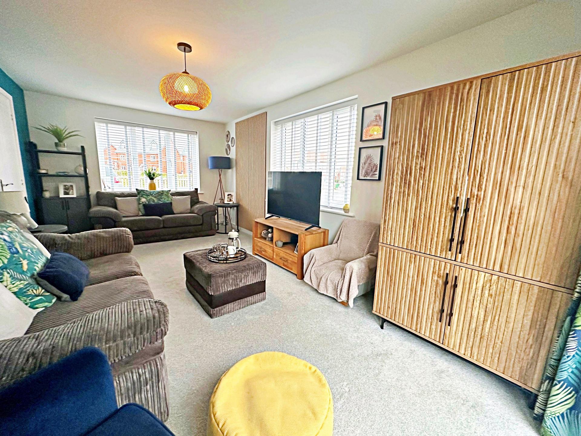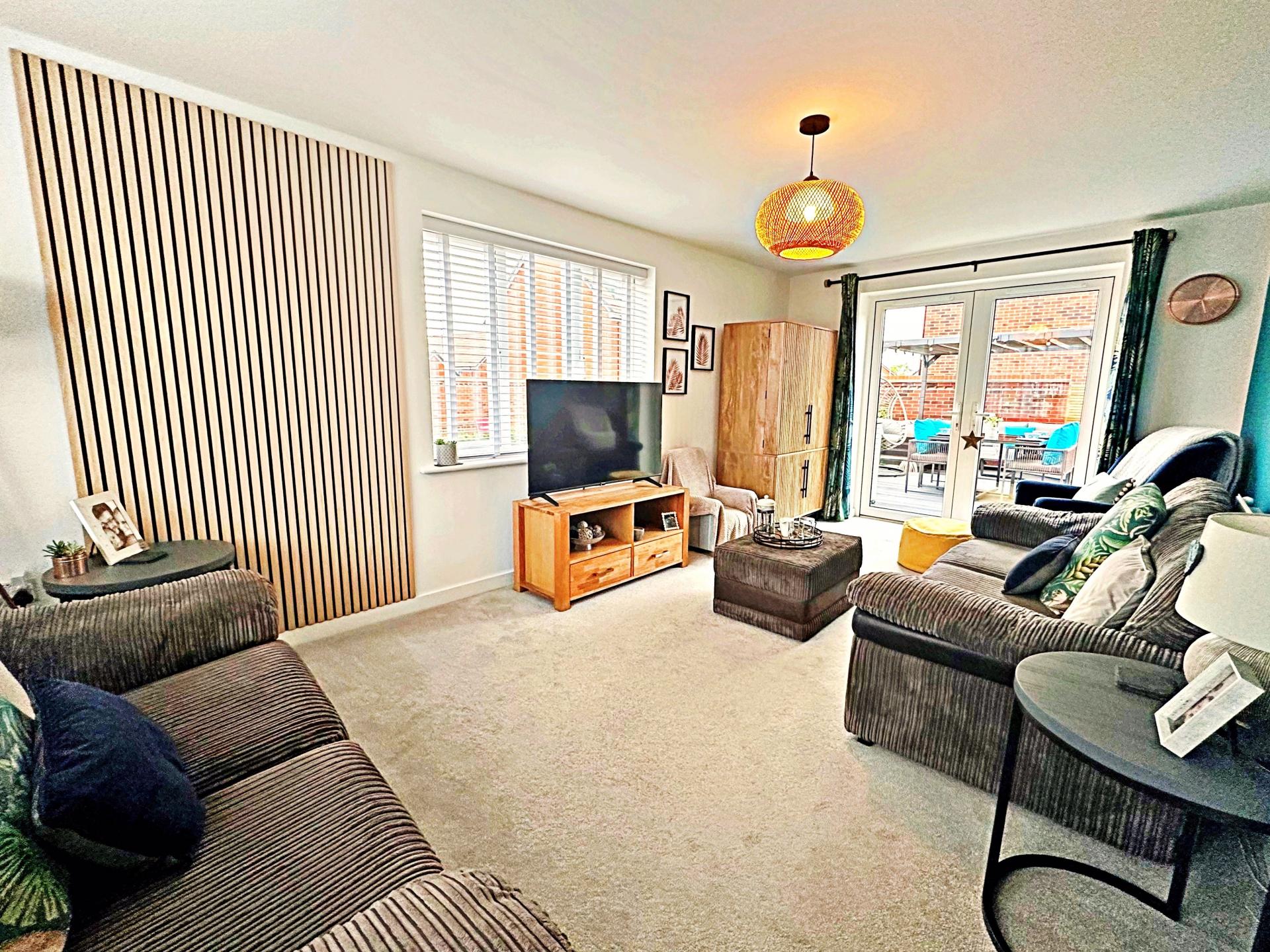 Double glazed windows with internal blinds to the front and side aspects. Double glazed French doors into the rear garden. Pendant light fitting. Radiator.