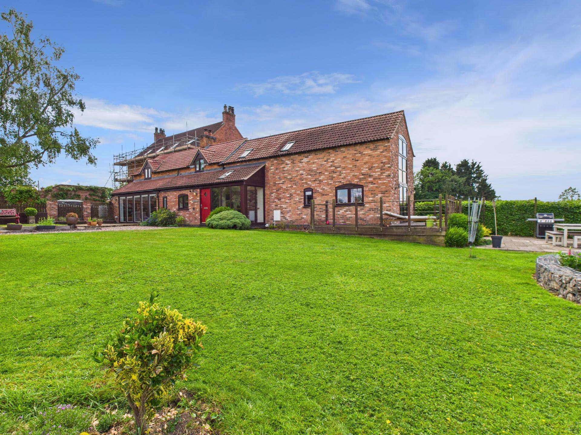 The garden is enclosed with low fencing to fully appreciate the glorious views over surrounding countryside. It is predominately laid to lawn with a variety of mature planting. There is a raised circular feature bed with colourful planting. There is a decked seating area directly outside the second sitting room/snug with steps down into the garden.