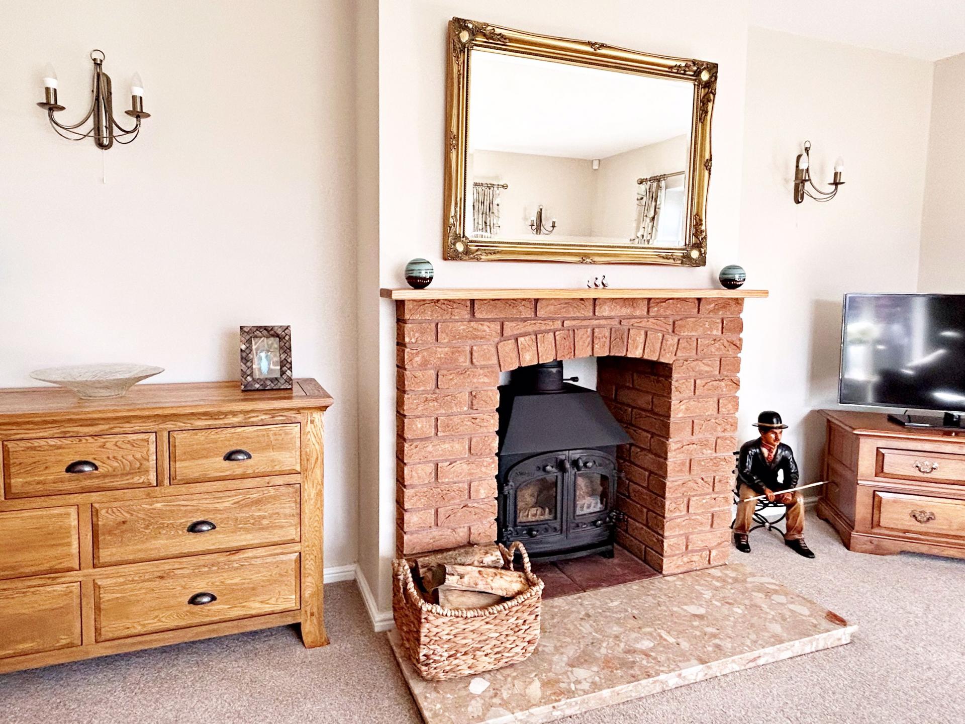 Double glazed windows to the front and side aspects. Brick fireplace with oak mantle and marble hearth housing the multi-fuel stove. Two radiators.